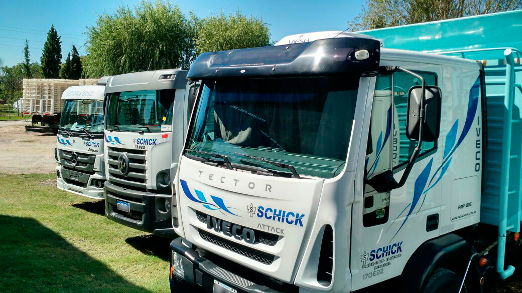 Conozca todas las posibilidades y soluciones en transporte de carga en general y especializada que ofrecemos en Schick S.R.L., contamos con equipos playos y camiones con estaqueras y barandas volcables, nuestros clientes recomiendan nuestro servicio por la puntualidad y responsabilidad.
